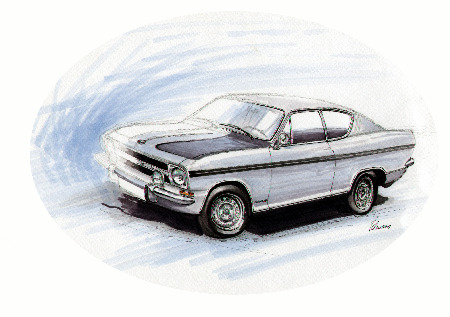 "Kadett B Rallye" // Bleistift, Tuschestift, Layoutmarker auf Karton, ca. 20 x 30cm